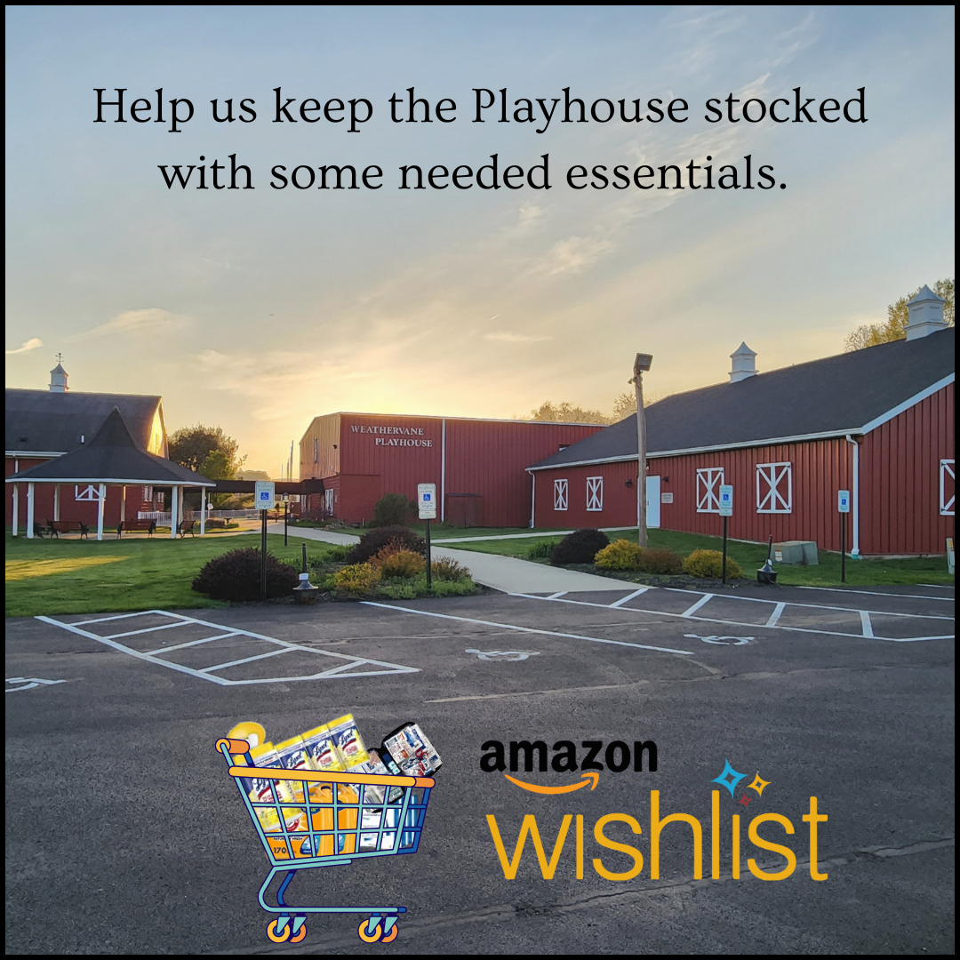 Support Weathervane Playhouse by donating a much-needed item from our wishlist! While you may not think about it, the theatre needs basic supplies just like you need at home, such as air filters for our HVAC units, laundry detergent to wash costumes, printer paper to make programs, and much more. The next time you're shopping on Amazon, consider grabbing an item from our wishlist. You can pick what you would like to donate, and it will be shipped right to us!