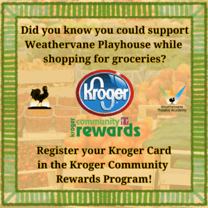 Simply go to www.krogercommunityrewards.com and sign into your Kroger account. If you do not have a Kroger account, you can easily create one. Once you have logged in, enter Weathervane Playhouse in the FIND AN ORGANIZATION box. Click on ENROLL underneath Weathervane Playhouse in the search results.
